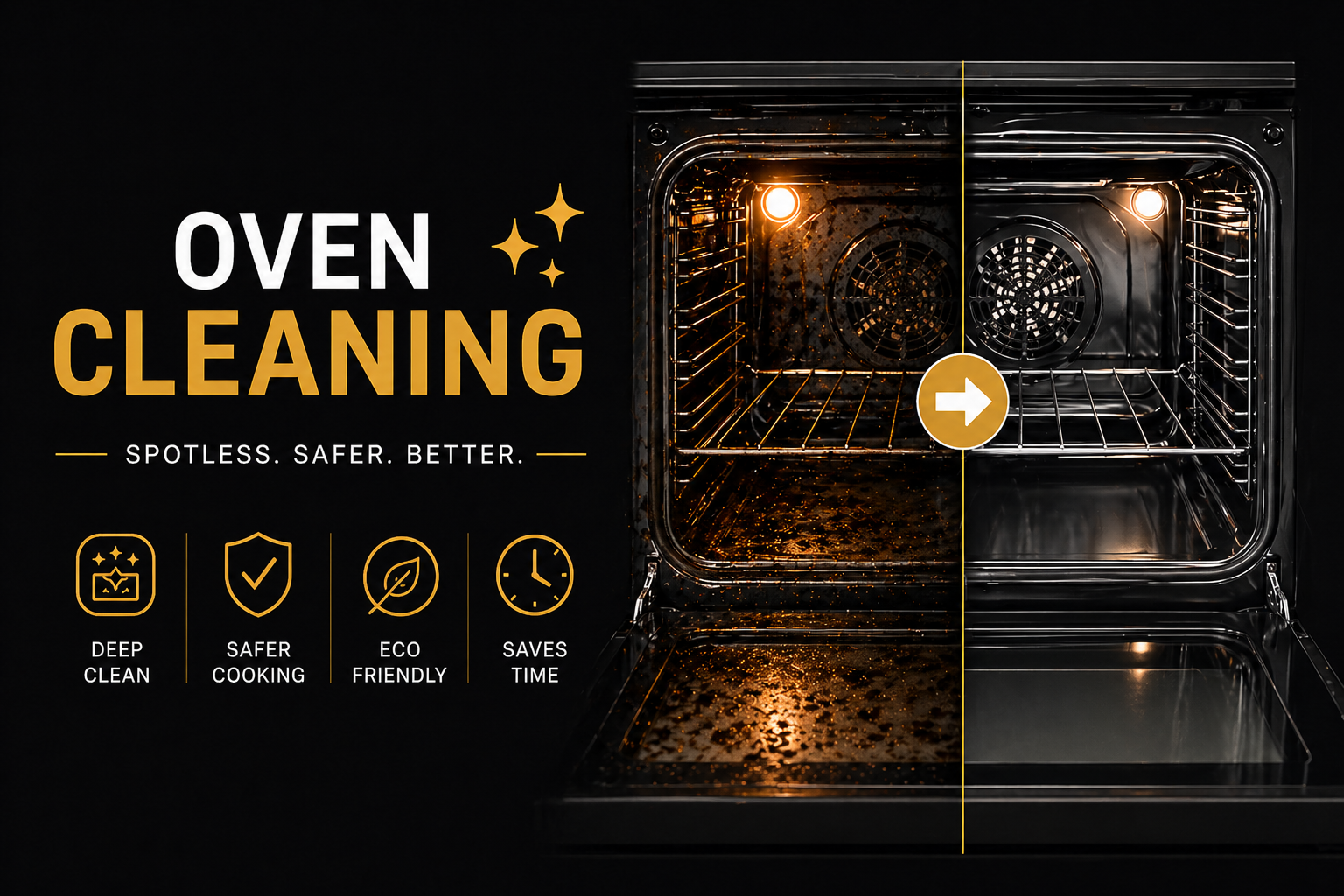 Our trained cleaners carefully dismantle removable parts such as racks, trays, and panels, soaking them in specialist solutions to break down tough grime. The interior, door glass, and seals are thoroughly cleaned using powerful but safe, non-toxic products—leaving your oven spotless, fresh, and safe for cooking.